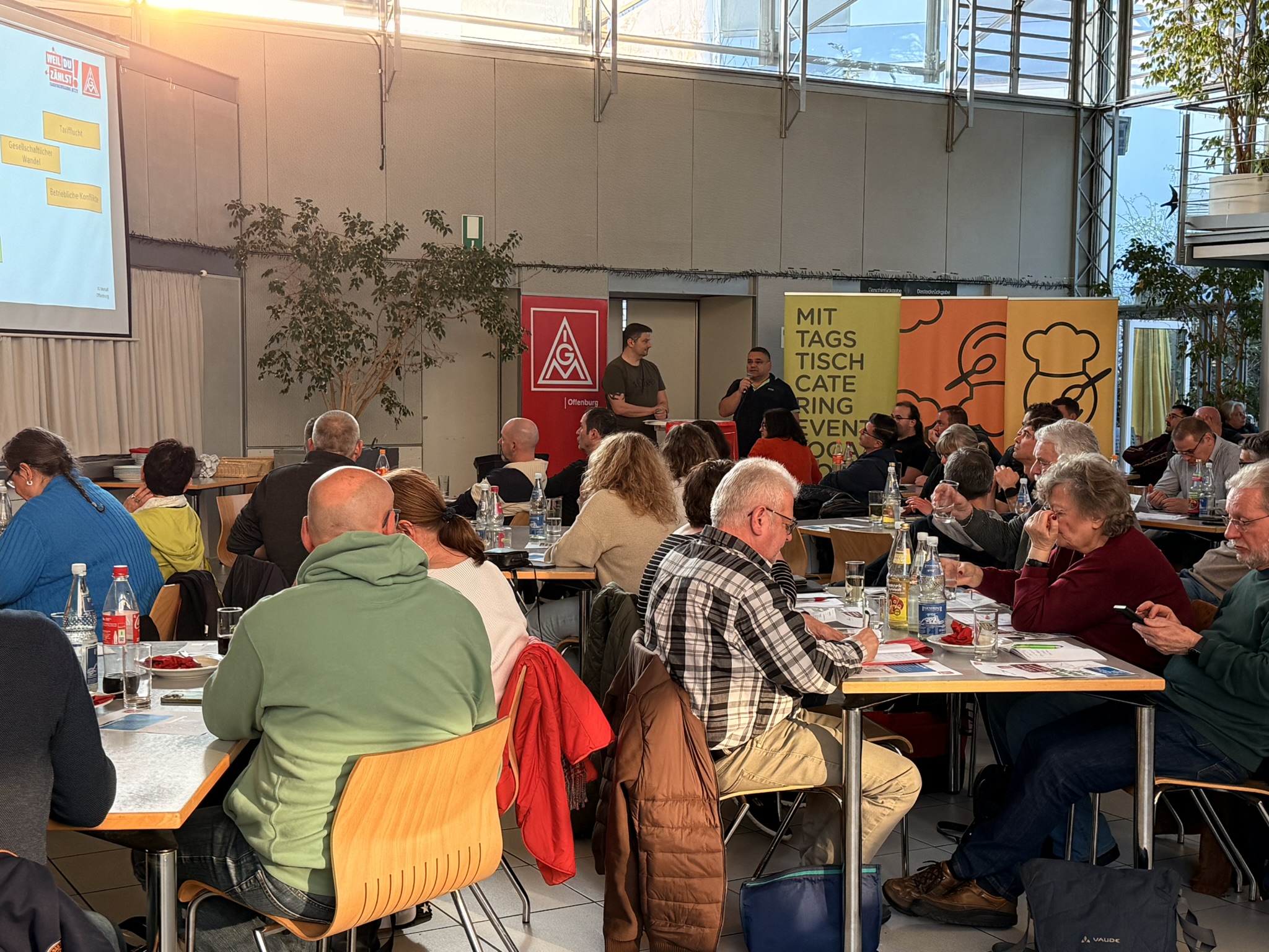 In einer von Christof Köcher moderierten Podiumsrunde berichteten Francesco Tramonti und Katja Wüsten von Bosch Bühl sowie Frank Zehe und Sascha Neumann von BSW Kehl von ihren aktuellen betrieblichen Konflikten. Offen schilderten sie die teils schwierigen Ausgangssituationen, mit denen ihre Teams konfrontiert waren. Im Mittelpunkt stand dabei, wie es ihnen trotz erheblicher Herausforderungen gelungen ist, Verbesserungen durch die aktive Beteiligung der Belegschaften zu erreichen. Ihre Beispiele zeigten eindrucksvoll, wie kraftvoll solidarisches Handeln wirken kann – insbesondere dann, wenn Beschäftigte gemeinsam hinter ihren Anliegen stehen und sich konsequent einbringen.