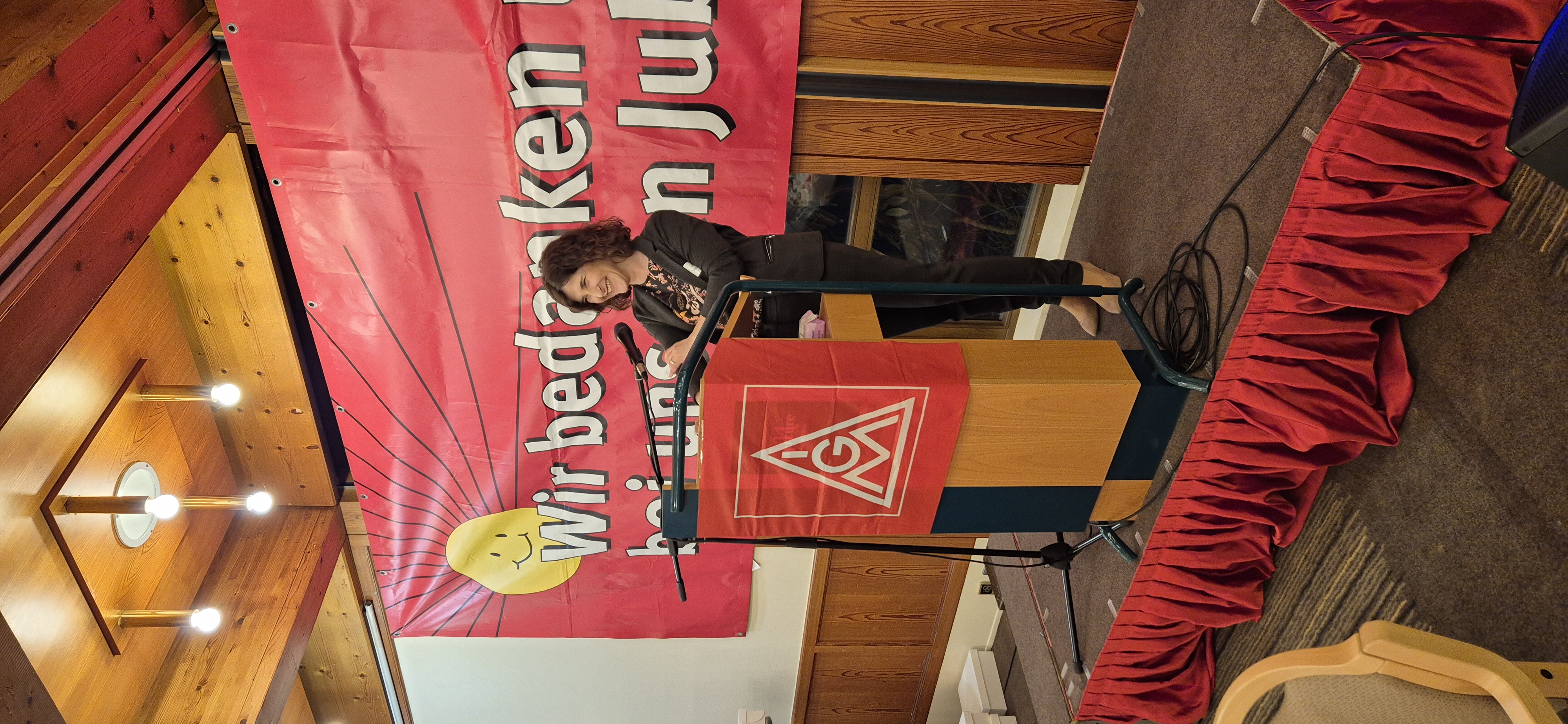 Die diesjährige Festrede hielt Maja Reusch, Erste Bevollmächtigte. Mit einem bewegenden Rückblick auf 80 Jahre Gewerkschaftsgeschichte sowie Verweisen auf prägende regionale Ereignisse und Meilensteine nahm sie die Anwesenden mit auf eine Reise durch die Zeit.